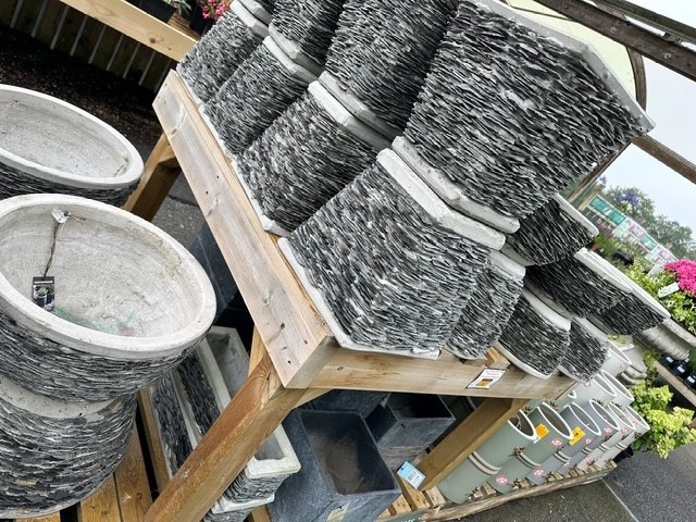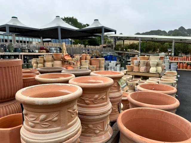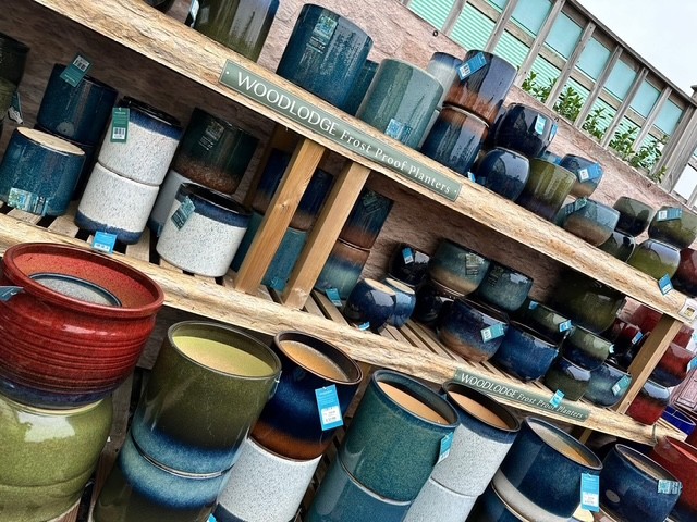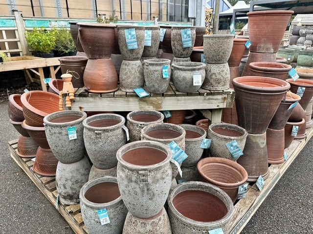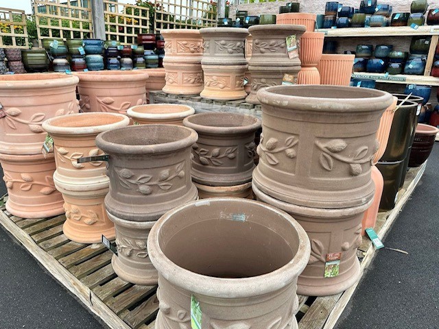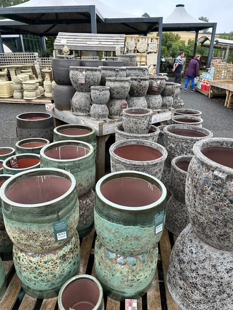 Including re-cycled pots, troughs and saucers, plus old favourites, terracotta and glazed.